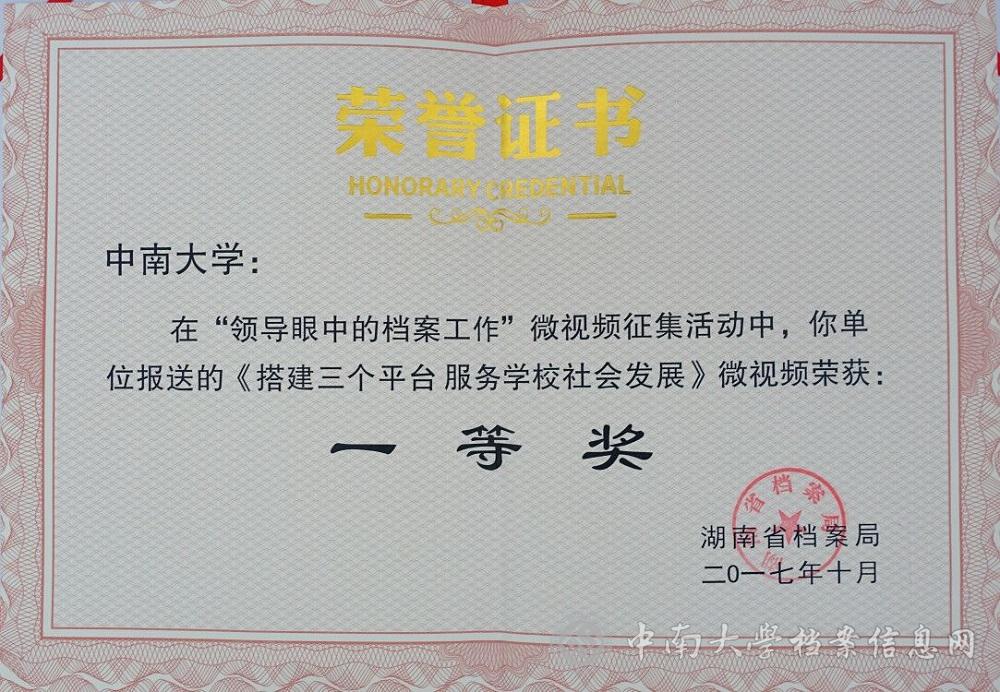 日前,由我校档案馆、宣传部制作的《搭建三个平台,服务学校社会发展》获湖南省档案局“领导眼中的档案工作”微视频一等奖,也是唯一获一等奖的高校作品。该视频从三方面介绍了我校的档案工作。一是挖掘校史资源,构建文化育人平台。2013年以来,高文兵书记充分利用办学史料,先后以“我们的大学”、“抗战中的中南人”、“中南人的担当”等为题,每年为新生主讲“第一课”。学校先后出版校史类书籍40余部,参与制作专题纪...