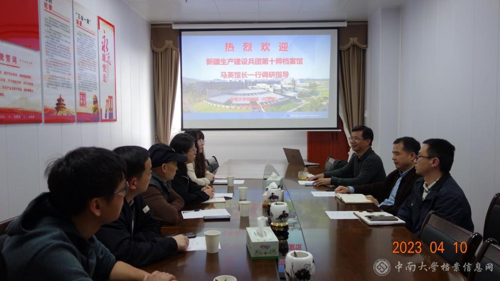 4月10日下午,新疆生产建设兵团第十师档案馆马英馆长一行来馆调研数字化建设情况,学校档案馆(校史馆)副馆长曹阳、信息技术室主任郑川及相关老师共同参与座谈研讨。