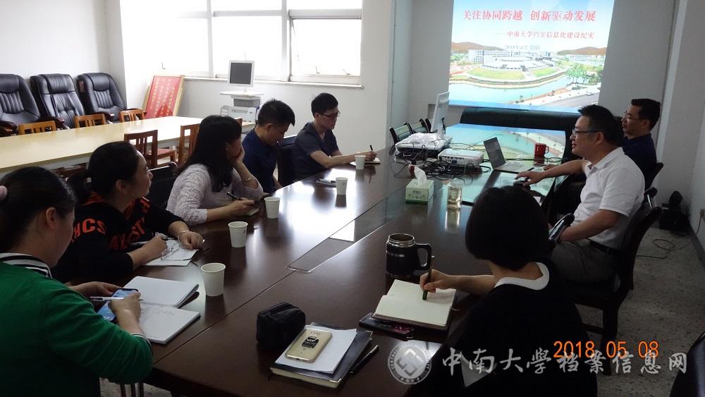 我校档案馆馆长乔硕功简要介绍我馆制度建设、档案人员培训、档案收集整理及档案利用服务、当前档案馆面临的情况及下一步的建设与发展思路。档案技术研究所常务副所长向禹详细介绍了我校档案馆发展历程、档案信息化的建设过程和档案工作展望等。