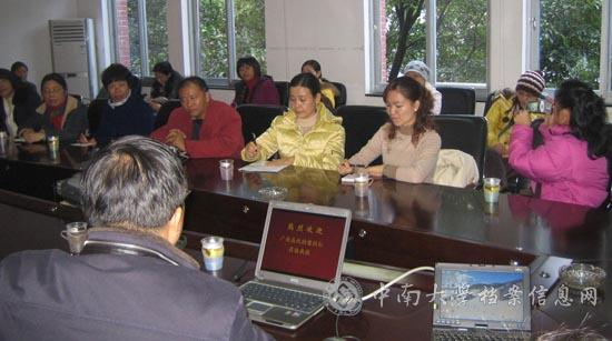 随后,吴世明副馆长就我校档案馆的机构改革、人员结构、校史编研、理论研究以及信息化建设做了全面介绍,他说,我们要拓宽档案工作思路,转变服务理念,提升管理和服务水平。我校档案馆国内高校中首创服务大厅,将传统的封闭式的服务理念转变为开放式主动式的服务理念,并实施首问负责制,真正做到有问必答。接着,吴馆长向考察团详细讲解了我校档案馆的信息化建设,他说,我们从2006年底开始筹备,2007年开始实施,逐步建设了档案信息网、网上校史馆展览系统、学位论文归档管理系统、出国成绩翻译系统、在线咨询系统等,并引进了世纪科怡档案管理系统作为数字档案馆的核心,理顺了档案工作,提升了服务水平。信息化建设也取得了不错的社会效益,档案利用率成倍的增加,我校的档案工作也获得校内外的好评,我们即将开展数字化加工,将库存档案数字化并在系统中实现全文检索,以后的档案利用将更加方便快捷。在谈到校史研究时,他说,校史能激发师生的爱校爱国情感,增加师生的自豪感,校史研究也充分发挥了档案馆的教育职能。
