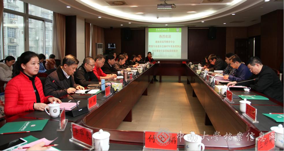 1月11日下午,湖南省高等教育学会档案专业委员会2017年常务理事会议在我校召开。省档案局业务指导处方坚到会指导,中南林业科技大学副校长陈冬林出席会议并讲话,省内22个理事长、副理事长、副秘书长及常务理事单位档案工作负责人和专家40余人参加了会议。会议由中南林业科技大学党办校办副主任洪梅主持。
