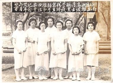 王昌壁校友是私立湘雅高级护士职业学校1947年的毕业生,原籍湘潭,抗战期间在沅陵湘雅护校入学。抗战胜利复员时,她和师生们一道,经历了冒着匪患之扰,乘船经洞庭湖回长沙的过程。毕业后,留湘雅医院任助产士,后随学校教务主任吴执中教授赴沈阳,接管当地的医疗机构而离开湘雅,成了沈阳医学院的员工。王校友提供的数张照片,弥补了老湘雅上世纪40年代末期到50年代初期的史料之缺,十分珍贵。